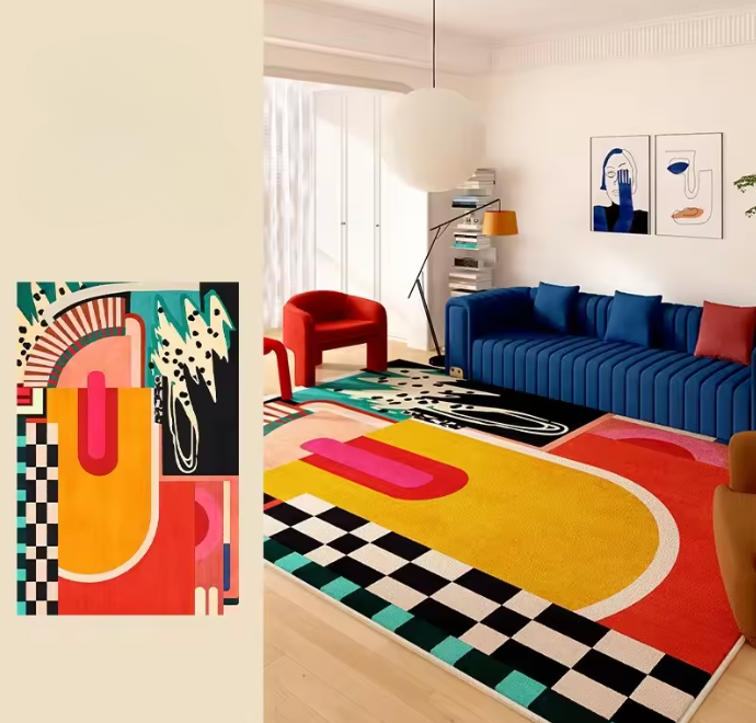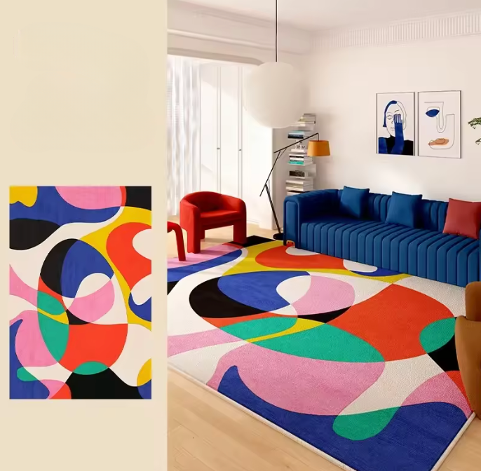 Colorido e expressivo, o Tapete Abstract Pop transforma qualquer ambiente com arte e ousadia. Disponível em vários tamanhos.